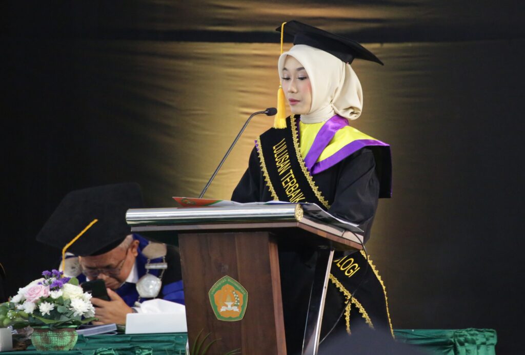 Pada wisuda kali ini, Fakultas Psikologi juga berbangga hati dengan terplihnya Pingkan Visionari Prasetyaningtyas sebagai wisudawan yang mewakili para wisudawan lainnya. Dalam sambutannya, ia menyampaikan pesan yang sarat makna dan menggugah semangat. Ia menekankan bahwa wisuda bukanlah akhir dari perjalanan, melainkan awal dari babak baru dalam kehidupan. “Hari ini bukan sekadar seremoni kelulusan, melainkan potret dari doa yang terjawab, pengorbanan yang terbayar, dan ketekunan yang akhirnya menemukan makna,” ungkapnya.