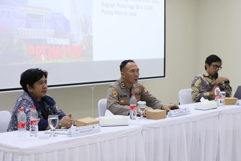 Lebih lanjut, narasumber juga menyoroti peluang karier bagi lulusan psikologi di kepolisian, di antaranya sebagai psikolog melalui jalur Sekolah Inspektur Polisi Sumber Sarjana (SIPSS), pegawai negeri sipil di lingkungan Polri, asesor kompetensi, criminal profiler, hingga tenaga pendidik di lembaga pendidikan Polri. Ia turut memotivasi mahasiswa untuk terus mengembangkan diri melalui beasiswa Polri dan program magang di unit psikologi kepolisian seperti Biro Psikologi SSDM Polri atau Bagian Psikologi Biro SDM Polda Metro Jaya.